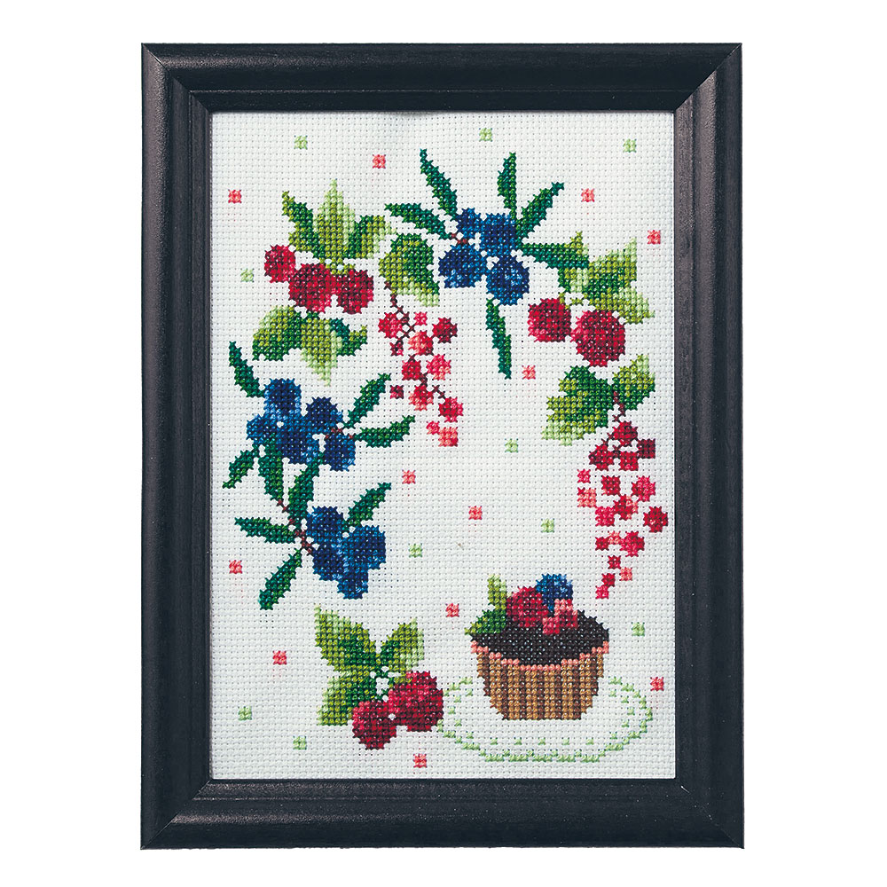 彩葉・フラワーガーデンクロスステッチ手作りキット ベリーとカップケーキ