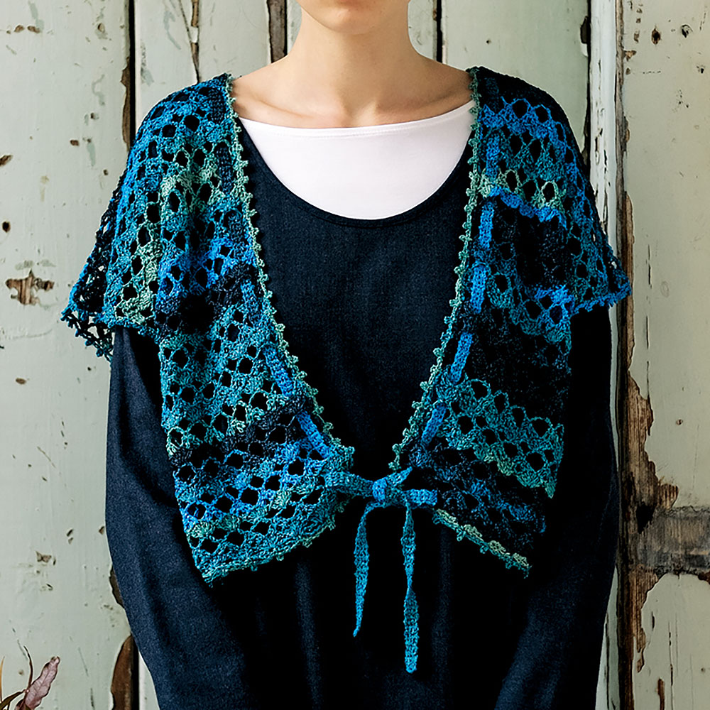 材料:ニッケビクター毛糸 ニッケペーパーリーフ ブルー系段染め(103)130g/5玉。