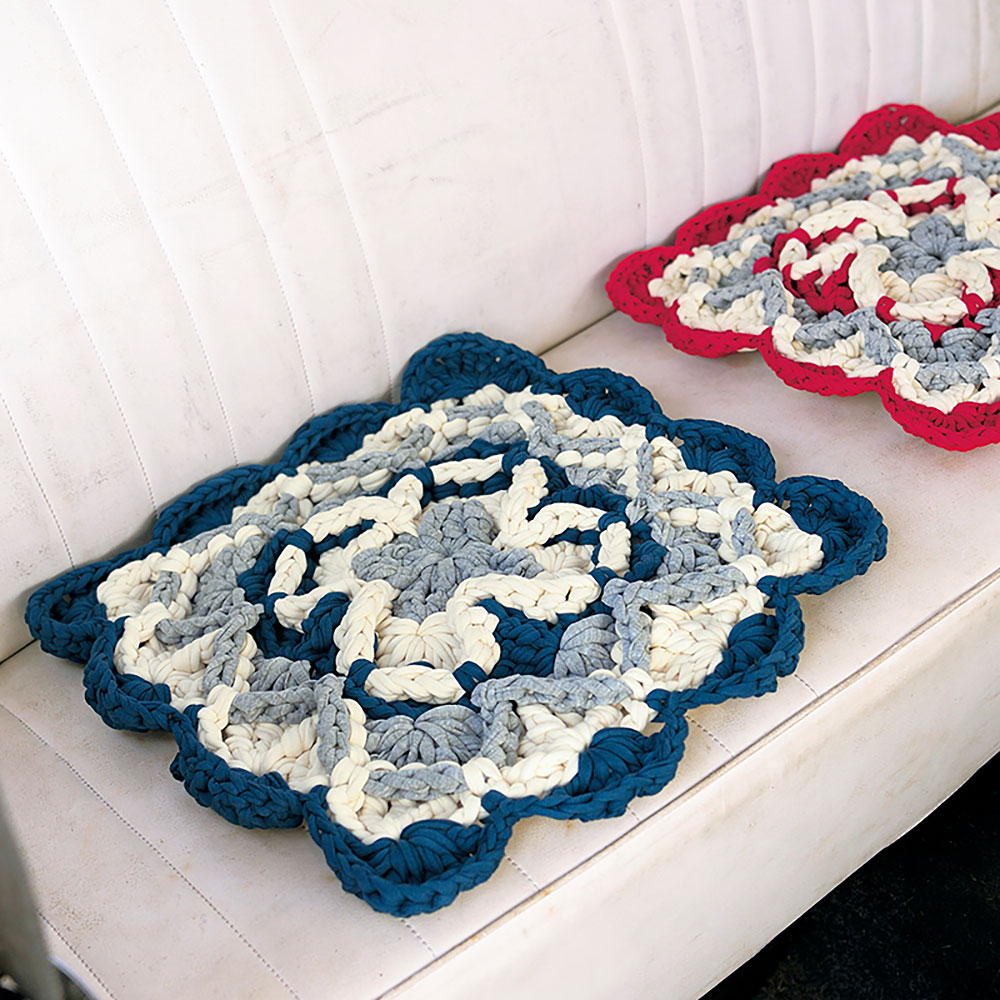 超極太のズパゲッティなら、ババリアン・クロッシェのモチーフ1枚でこの大きさに。編むのに少し力が要りますが、すぐに編み上がります。