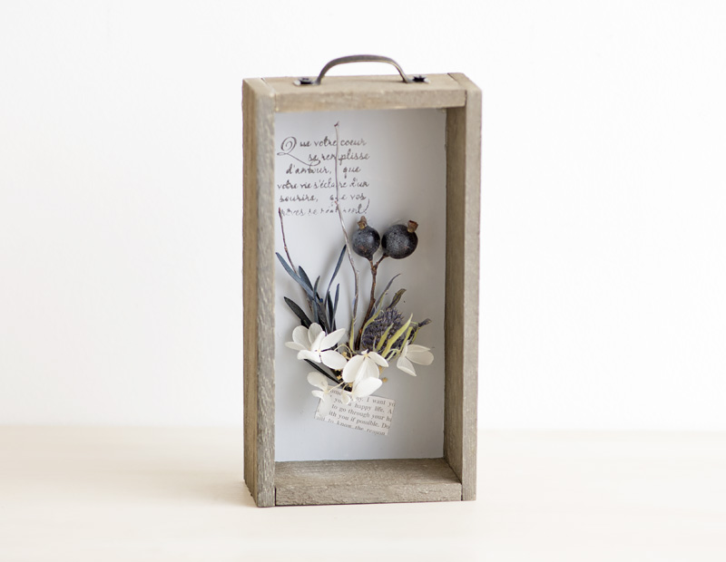 フレーム・デザイン台・花材セット・英字ペーパー・取っ手金具×各1、作り方説明書付き