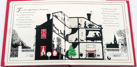 有名なクリスマスストーリー“ナイトビフォークリスマス”を、クリスマスカラーの赤・緑・金、そして切り絵の黒で再現。ページごとに仕掛けがあり、ラストシーンのドラマティックな切り絵のポップアップは芸術的です。プレゼントにもお勧め。