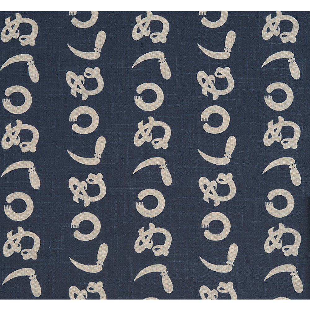やや厚手の藍染め風土台に、歌舞伎・七代目市川団十郎が愛用した図柄「かまわぬ」をプリント。のれんやボーダー用、小物作りなどにお勧めです。