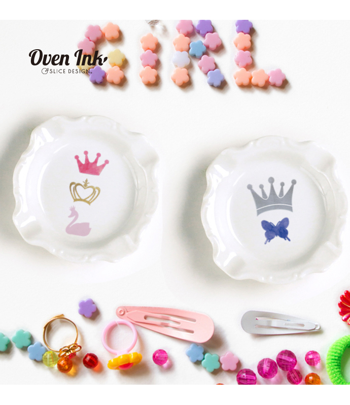 オーブンインクは、陶器やガラスに家庭用の電子レンジ3分&オーブン3分でシートの絵柄だけが焼きつく新感覚のクラフトです。シール感覚でオリジナル柄の雑貨や食器づくりが楽しめます。