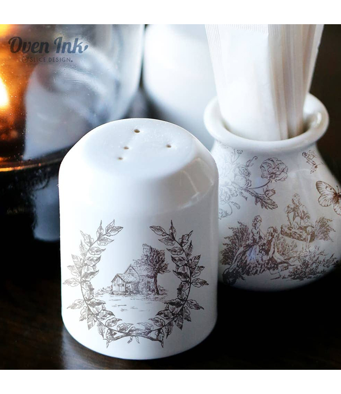 ※オーブンインクはシールではありません。電子レンジ&オーブンレンジを使用して絵柄のみを転写し焼き付けできる新素材シートです。
