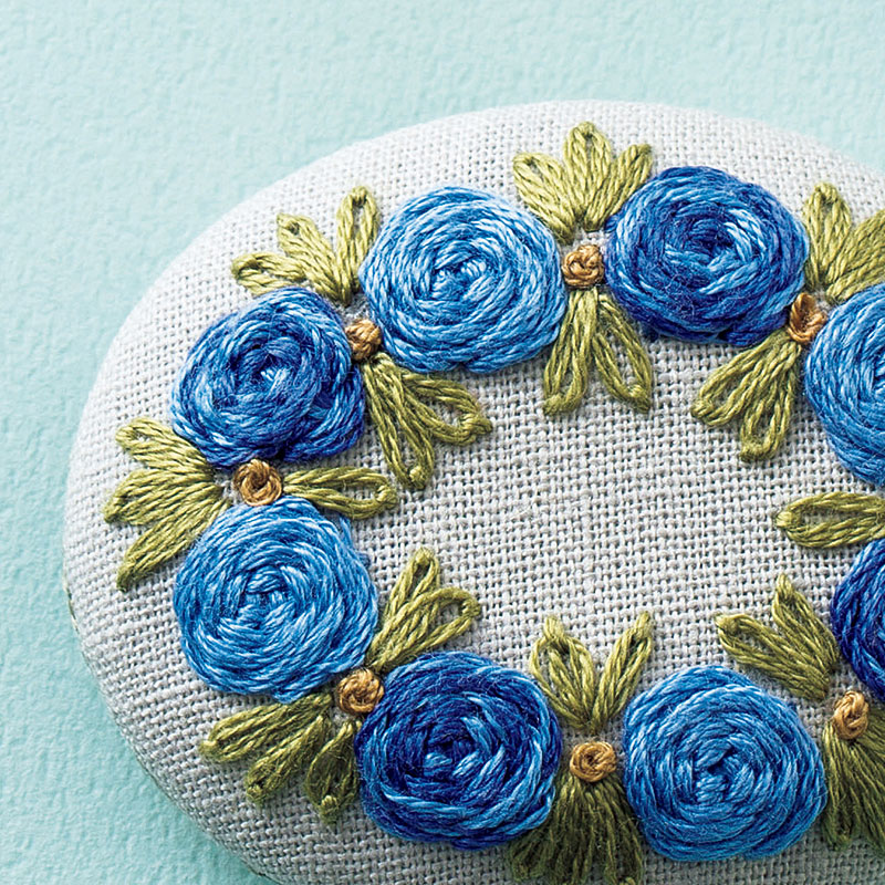 ブルーローズは普段に使うブローチとして、ジーンズとリンクするようにブルーをセレクト。藍染の洋服などにも合いそうです。