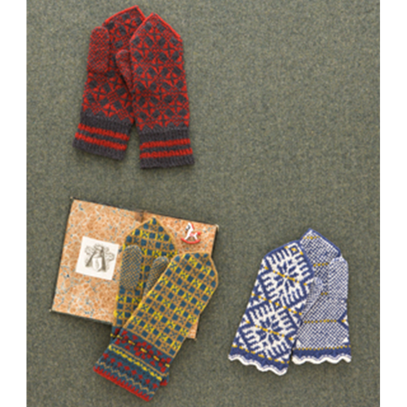 ミトンて、5本指の手袋にはない可愛らしさがありますよね。平面部分の大きさを活かして柄を楽しめるし、配色が無限に楽しめる。細い糸の編み込みは仕上がりがきれいで、糸がわたって厚みが出るので、使い勝手もいいですよ。
