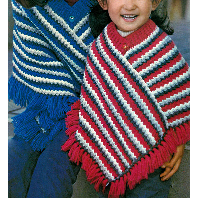 配色と大きさを変えて、ポンチョで親子コーディネート。