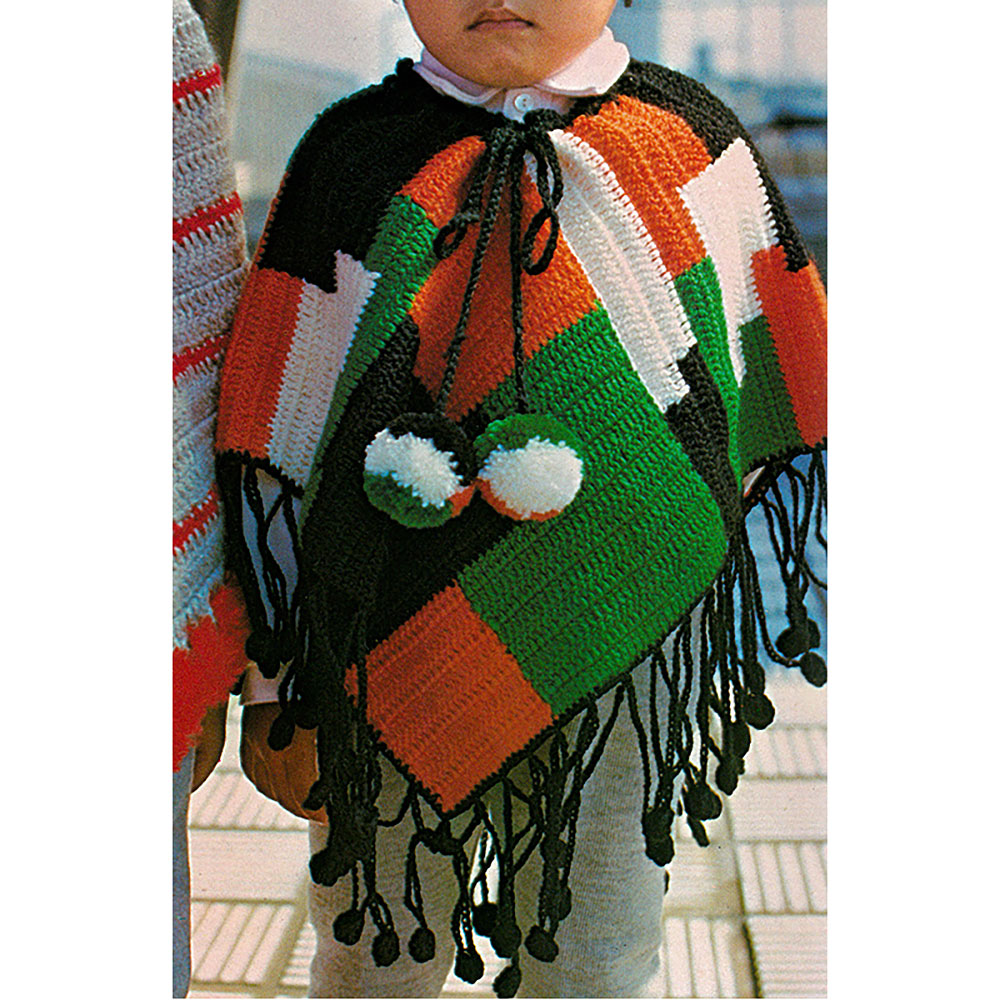 ブロックのような配色模様が楽しい子供(2~3才用)のポンチョ。