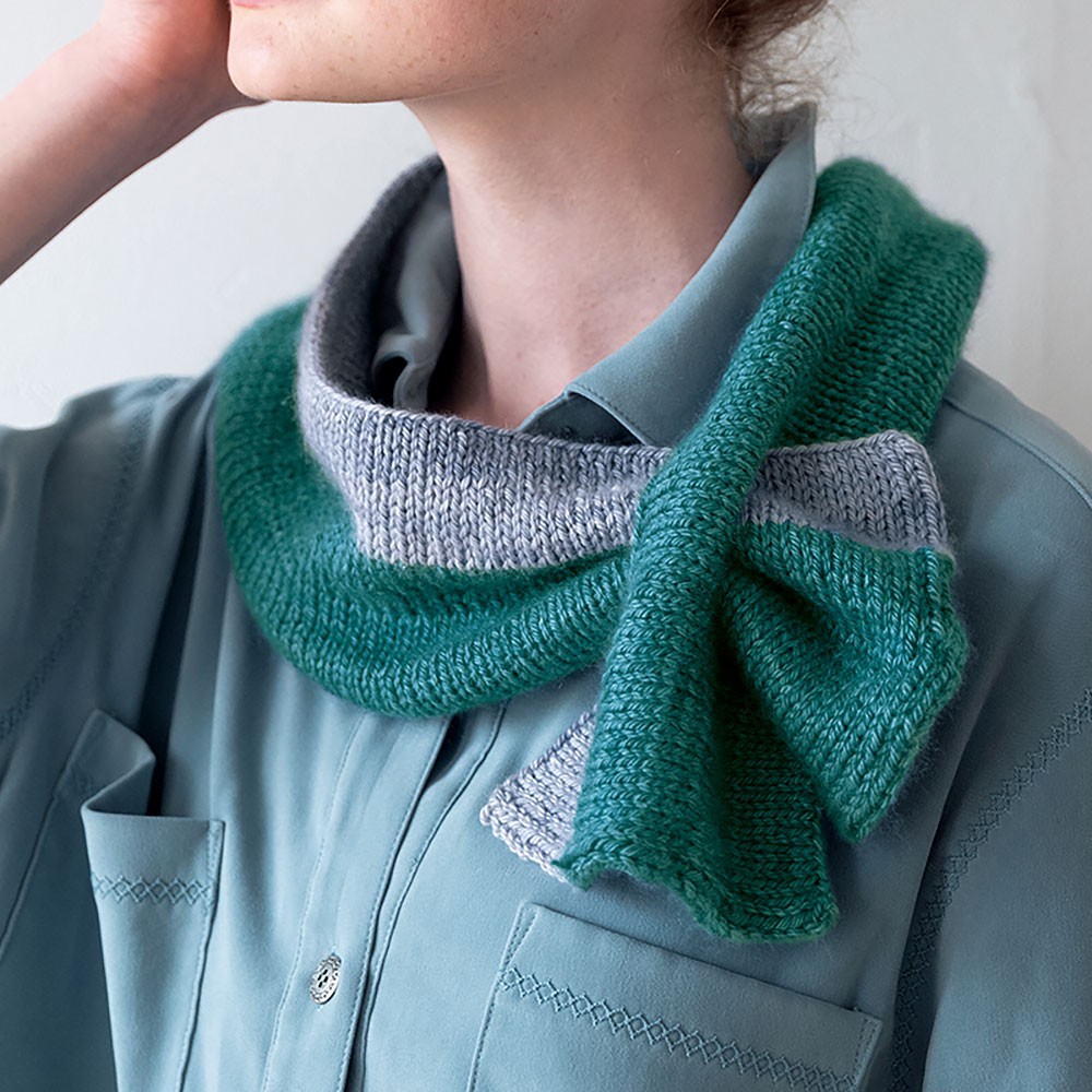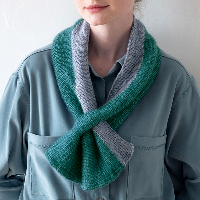 材料:アマーノ マユ 緑(2013 cool breeze)100g/2 カセ、グレー(2011 celestial)45g/1カセ。