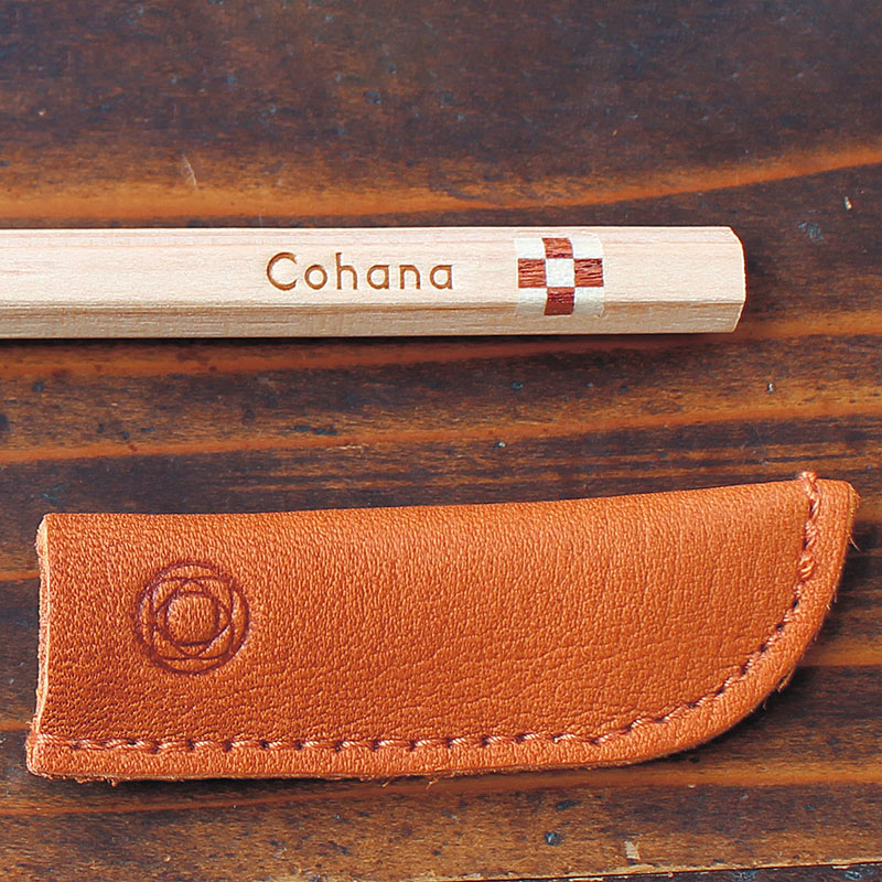 本体=木(桂・水木・唐変木)、粘土、黒鉛、油、キャップ=本革、袋=トウモロコシ繊維、ナイロン