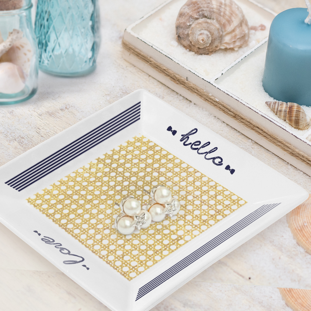 2種のストロー模様が入った一枚。差し色のネイビーストライプとロープ文字が愛らしいシートです。