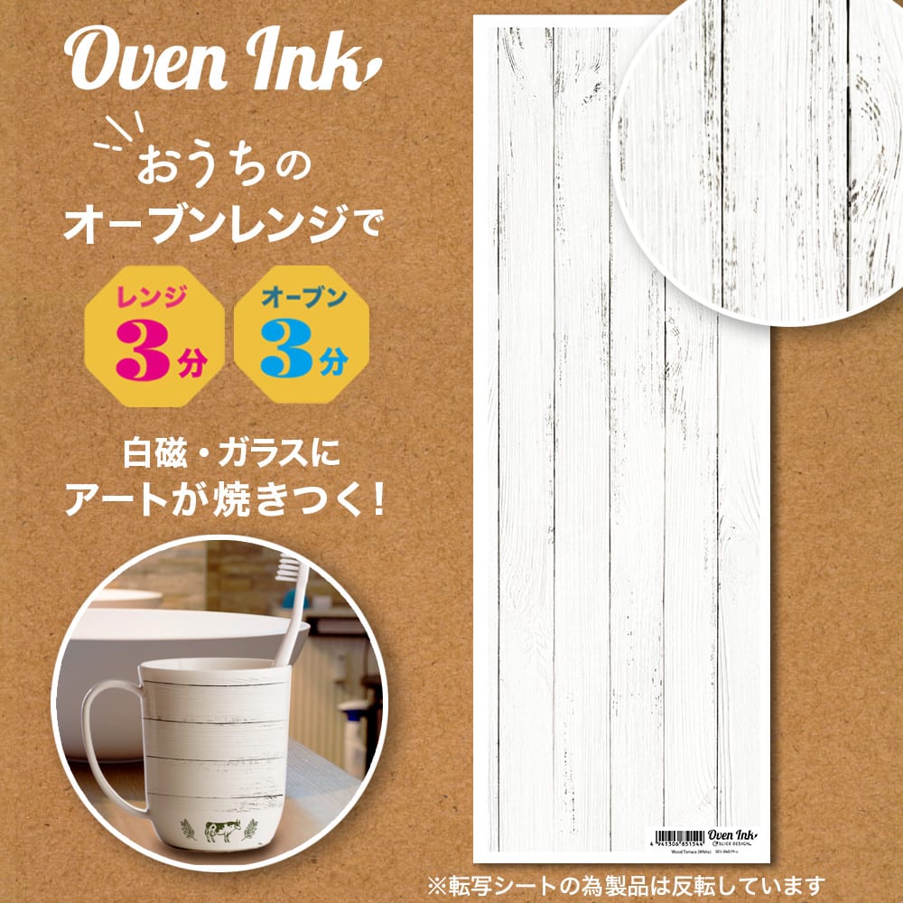 ※オーブンインクはシールではありません。電子レンジ&オーブンレンジを使用して絵柄のみを転写し焼き付けできる新素材シートです。