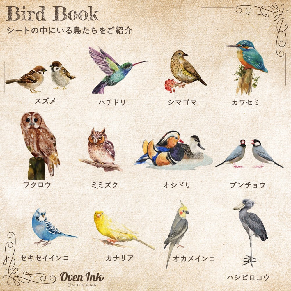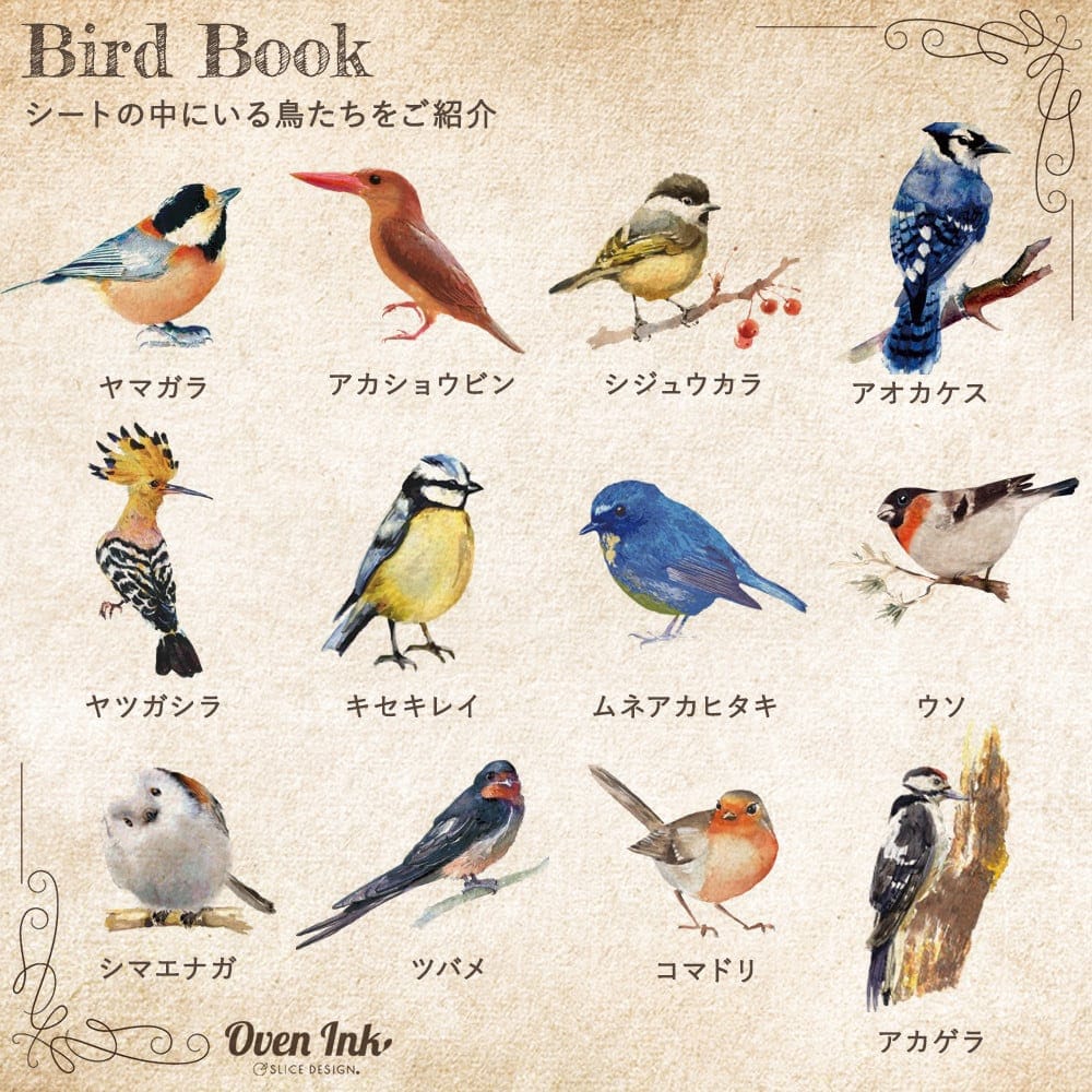 愛鳥家にはたまらない27種のバードモチーフが詰まった一枚。総貼りにも華やかな一枚です。
