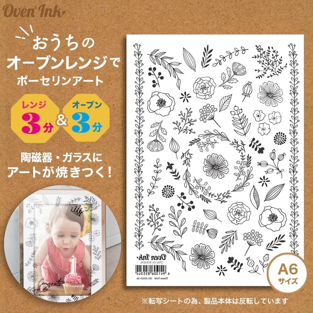※オーブンインクはシールではありません。電子レンジ&オーブンレンジを使用して絵柄のみを転写し焼き付けできる新素材シートです。