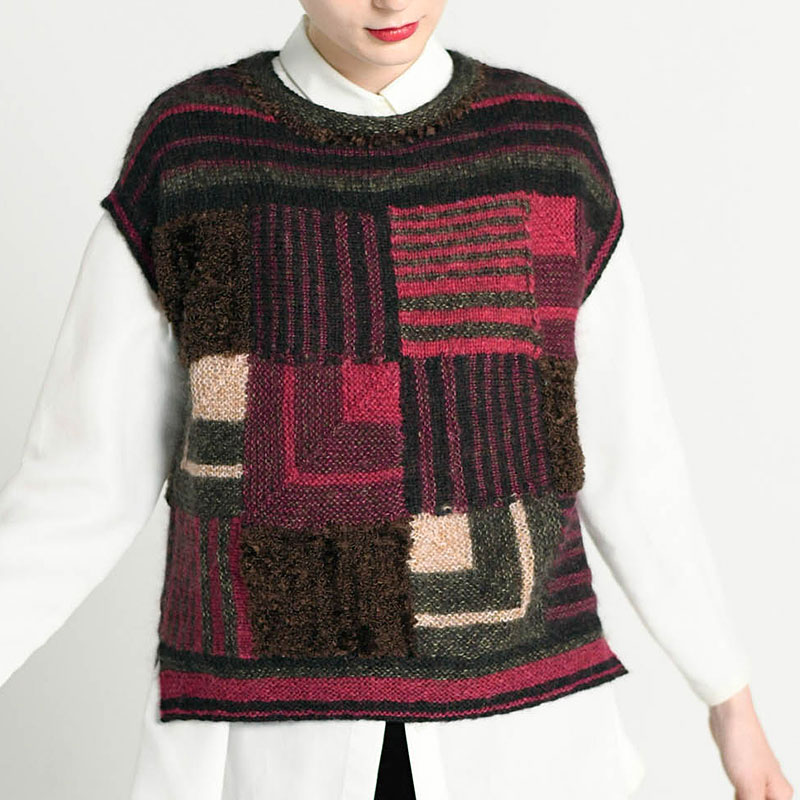 四角いブロックをカラフルに組み合わせて、まっすぐシルエットのベストに。ドミノ編みを効果的に使っています。