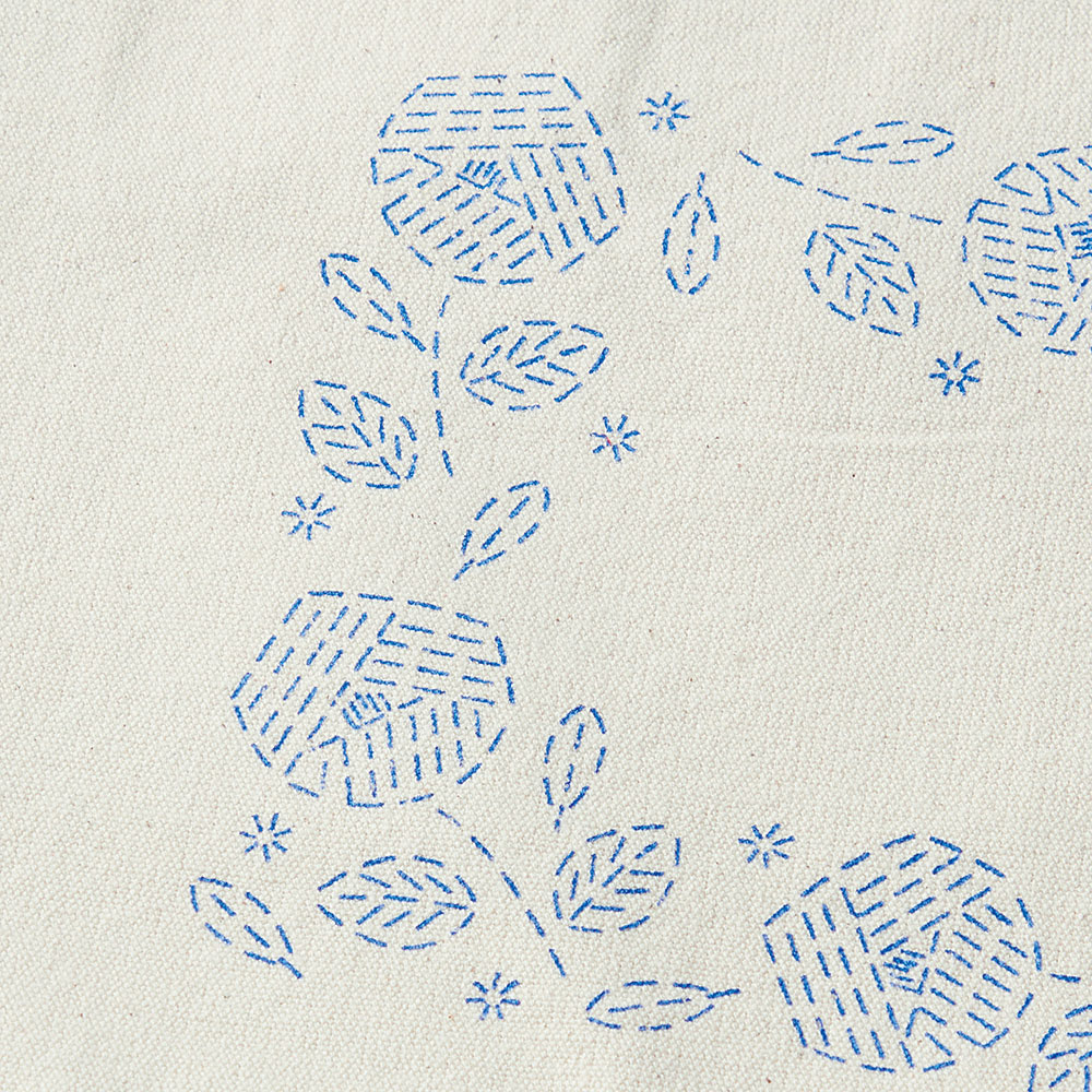 布地にはあらかじめ図案がプリントされているので、刺し子の模様をなぞるように刺していくだけで、完成度の高いバッグが出来上がります。