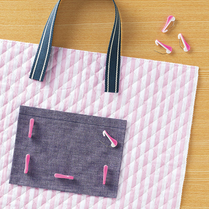 ▲〈まち針代わりに〉クリップでは届かないポケットなどの仮止めにも便利