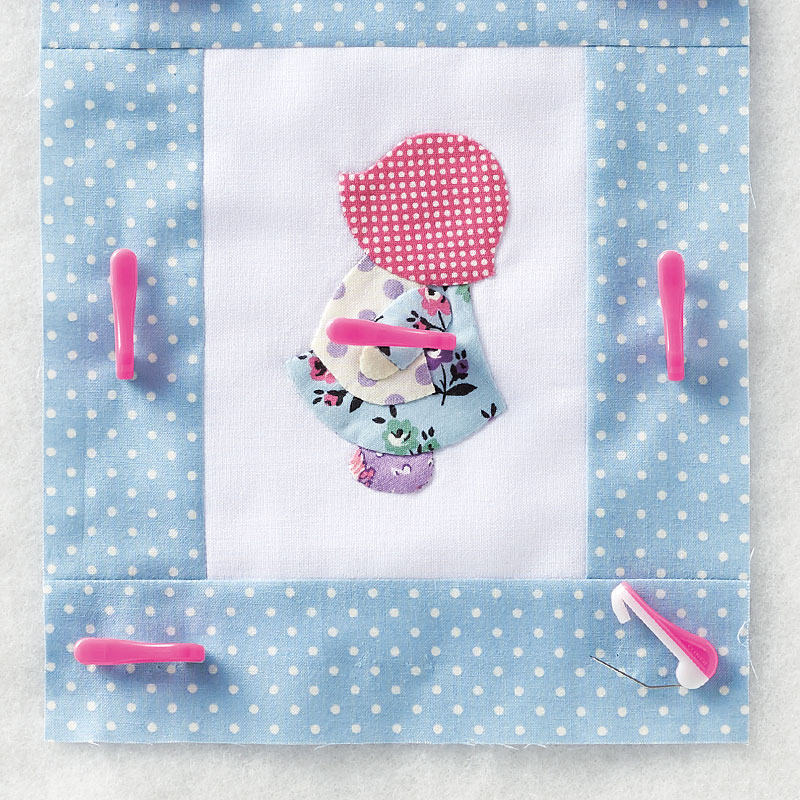 ▲〈キルト小物に〉糸でしつけ縫いするよりも手軽で、直す場合も簡単
