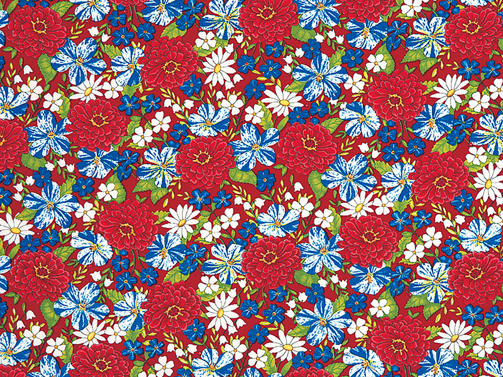 【USAコットン】赤と青の対比が印象的な、鮮やかな花柄プリントです。ピースワークのアクセントに。