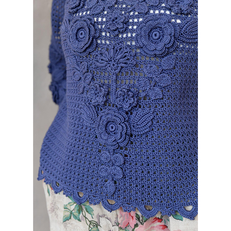 シンプルなベースに、アイリッシュクロッシェのモチーフをたっぷりとトッピング。袖口や後ろ姿まで気を抜きません。ボリュームのある花、可憐な花、横からのシルエット、葉っぱ…。モチーフの種類や数、配置はお好みでアレンジ可能です。ドレッシーな服と合わせるとぐっとエレガントな雰囲気になります。