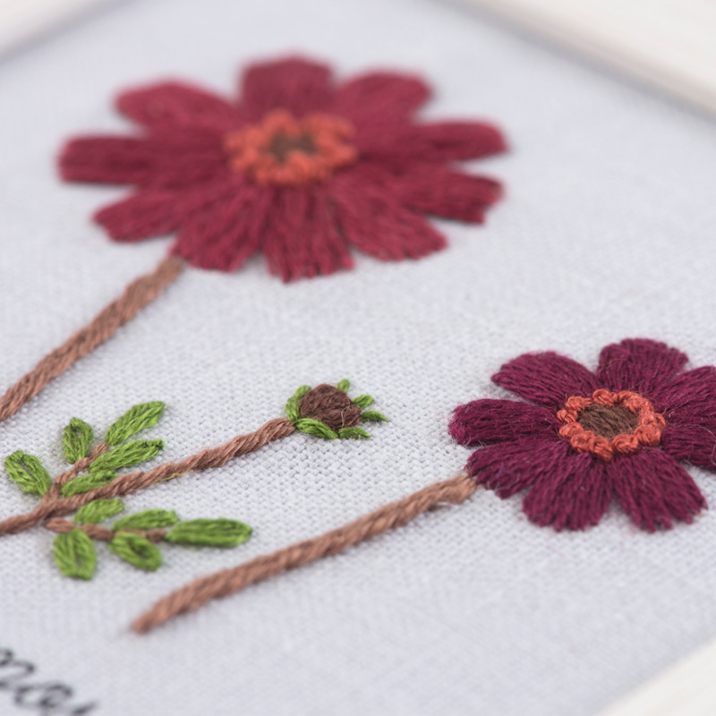 【フレームつき】【キット作り方つき】青木和子さんが描く季節の花シリーズより、秋冬の作品。図案印刷済み布にほぼ基本のステッチで刺すので、初心者の方でもOKです。作ってすぐに飾れるナチュラルなフレームつき。