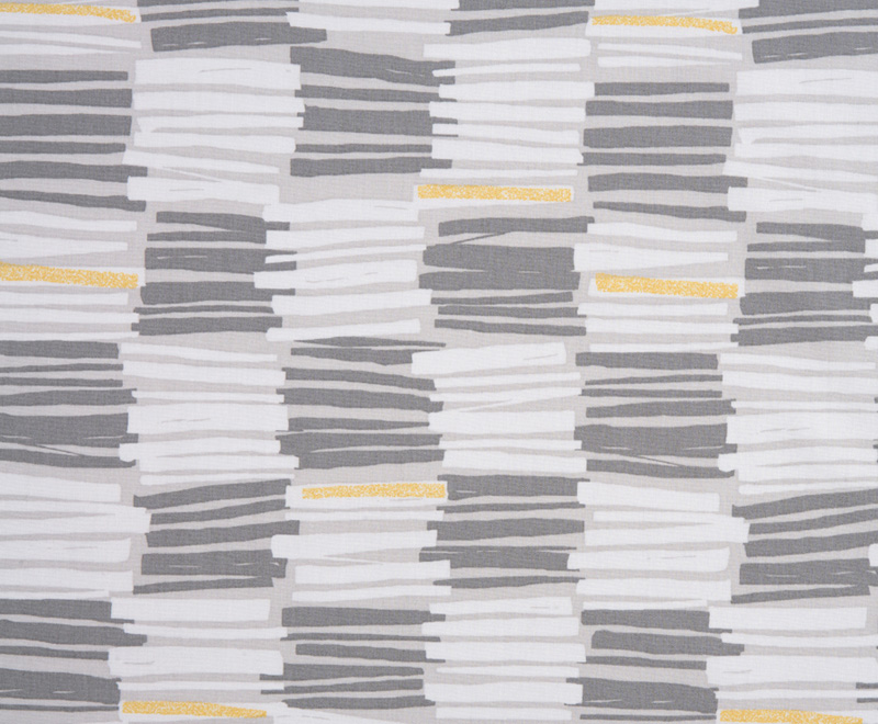 【ブロード】グレーの濃淡で幾何学模様をプリント。所々に入った黄色がアクセントです。シャツなどのソーイングに。