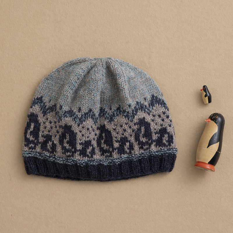 大人ペンギンの後ろをくっついて歩く子どもペンギンの柄がキュート。程よい色合いでまとめた大人かわいい1枚です。