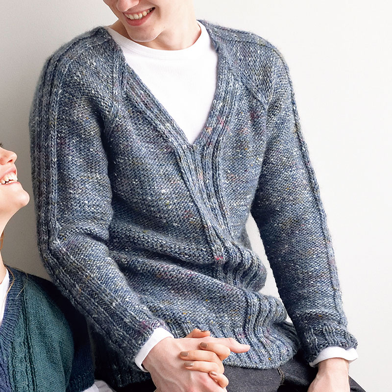 シンプルな編み地に太めのリブを効かせたVネックセーターはスウェット感覚で着てほしい。ネップのあるグラデーションカラーでおしゃれ感のある仕上がりになります。軽さと肌触りの良さにも注目です。