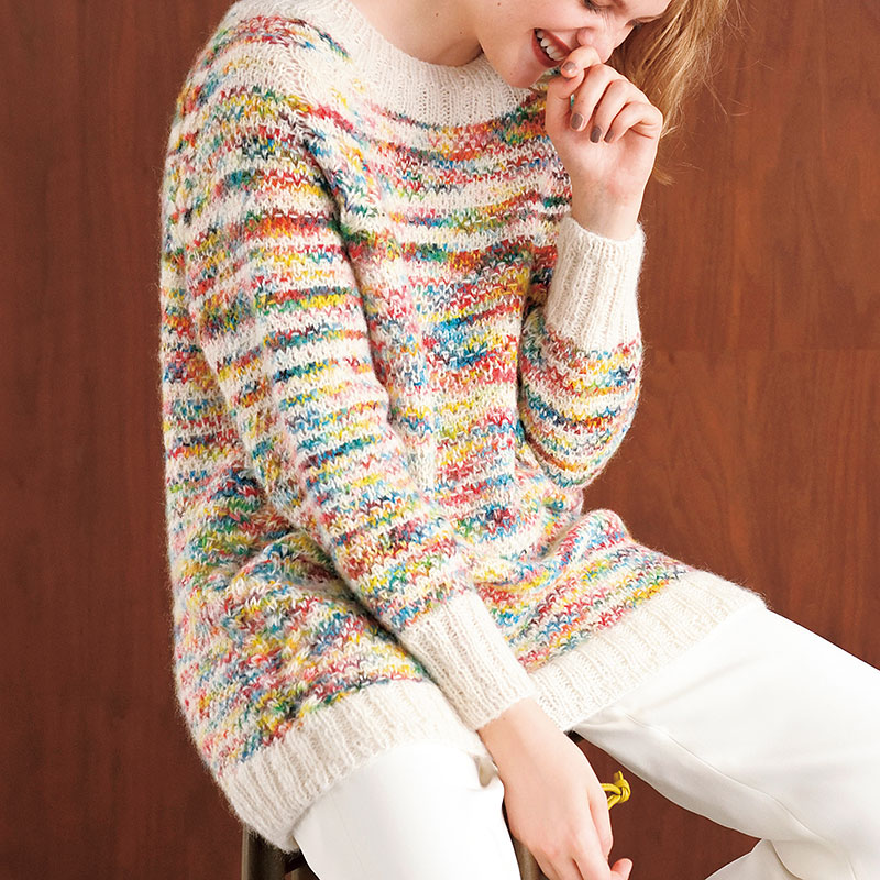 ランダムに変化する元気カラーの段染め糸を