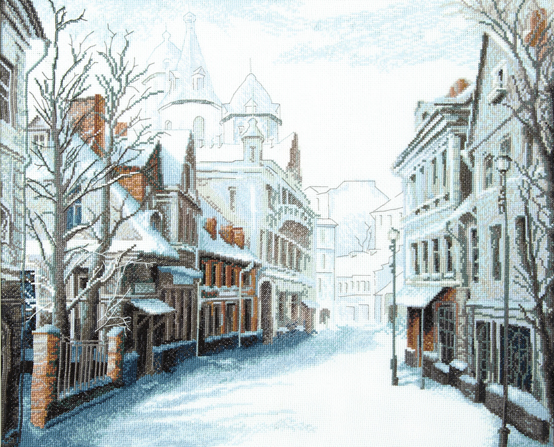 【キット作り方つき】ひっそりとした街並みを描いたクロスステッチ作品です。上級の方へ。