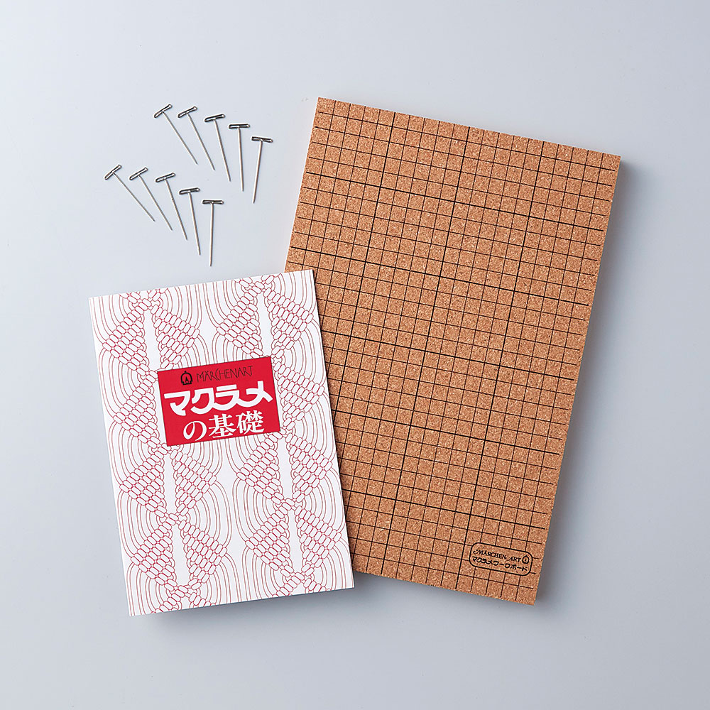 コルクボード、マクラメピン(10本)、マクラメの基礎本