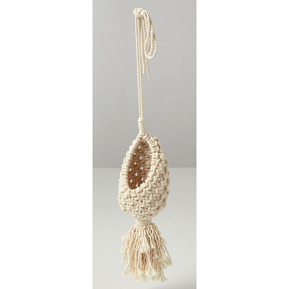 基本の結び方で作るスタンダードなデザインのハンギング。ネット部分には5~6号の鉢が収まります。