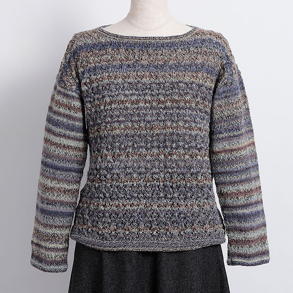【限定25】新発売の糸を上品にいかした、透かし模様のセーターです。糸は細めながら弾力があってとても編みやすく、編み上がりのボリュームも程よい薄さ。透かし模様も立体的に編みあがります。