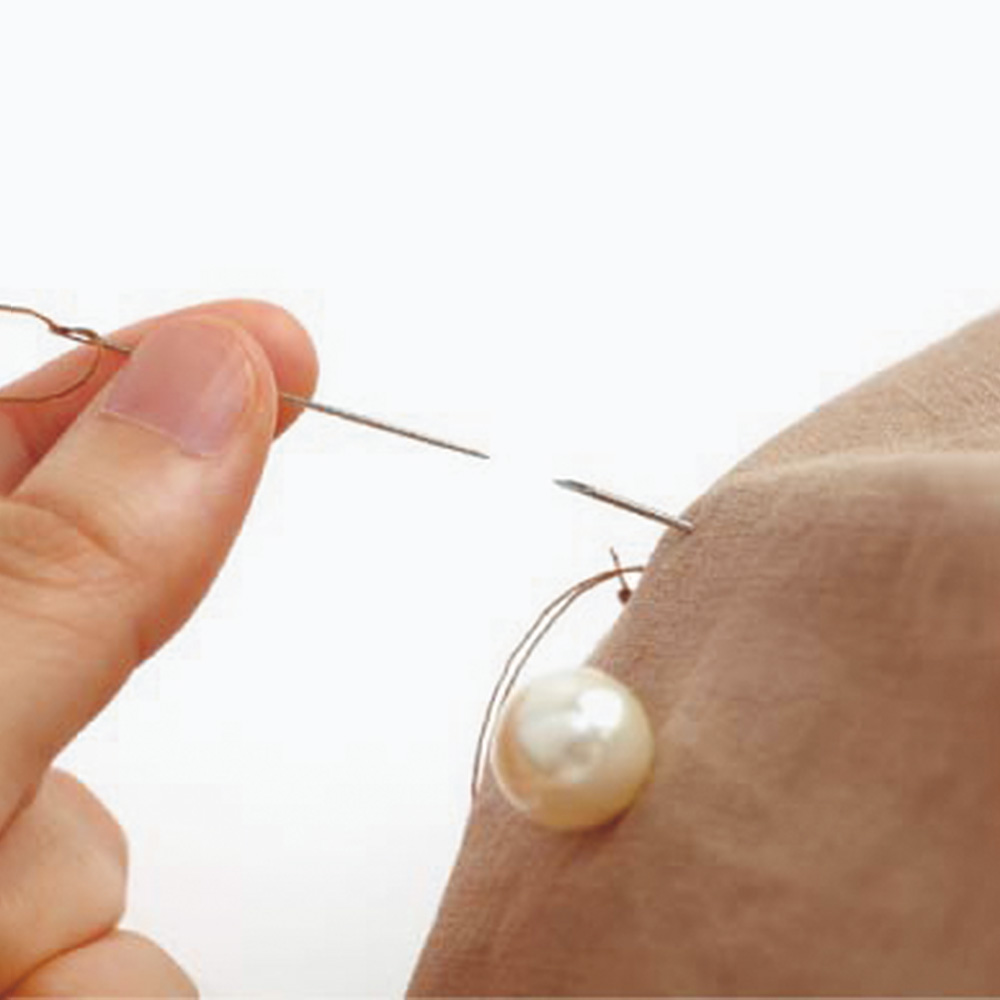針を出したい位置の表からクイックニードルを刺し、クイックニードルの針の中に縫い針を刺込み表側方向にクイックニードルを引き抜き針を出す仕組み。