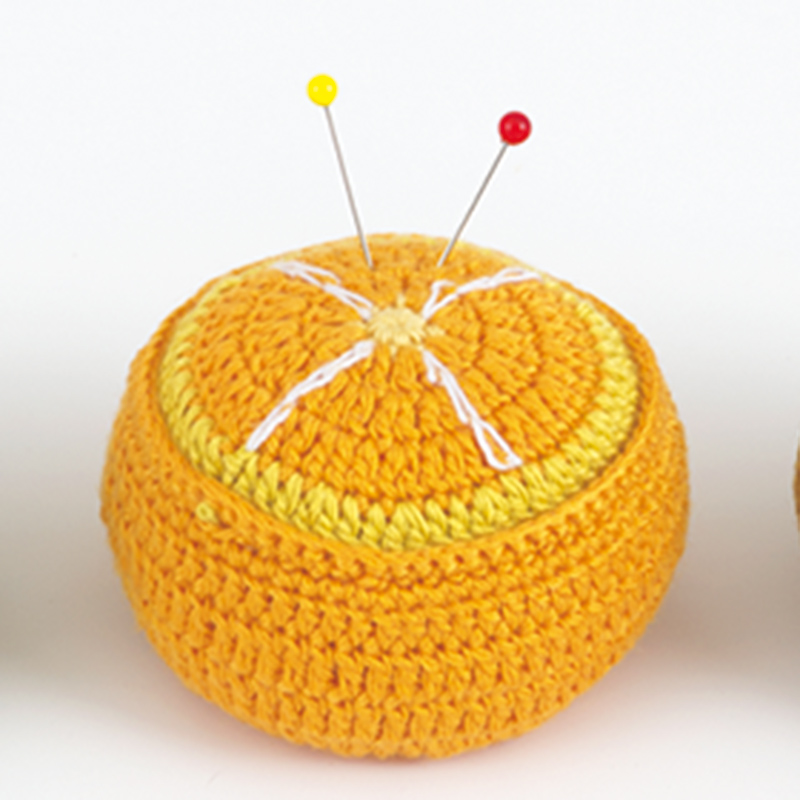 ヨーロッパで人気のコットンウールで編み上げた置いているだけでも可愛いオレンジザインの針山文鎮。中にはファインサンドが入っています。ちょっと型紙を押さえるなどの錘にも。