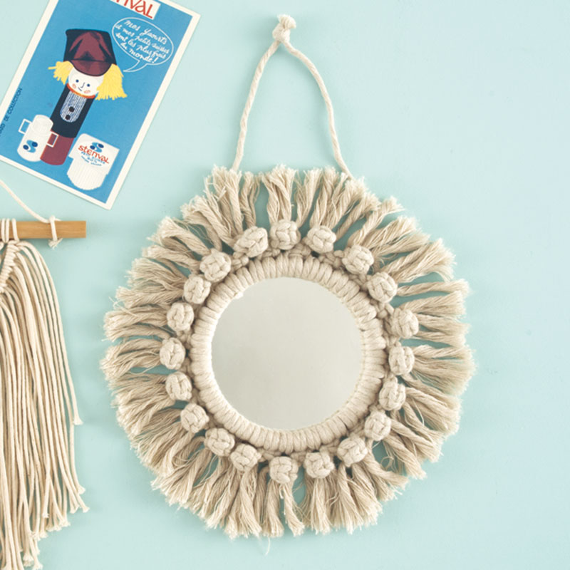モップコード4ミリ(綿70%、麻30%)、プラスチックリング、ミラー