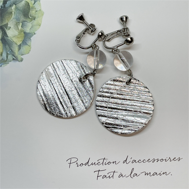 クレイ(ホワイト)、オーブンベイククレイソフナー、イヤリングパーツ、透明ビーズ、9ピン、丸カン、シルバーリーフ、レシピ