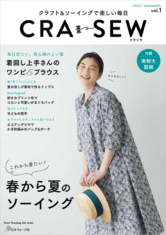 年4回(3、6、9、12月)発行の定期刊行誌。「CRA-SEW(クラソウ)」はクラフトとソーイングの造語。これからの季節にぴったりの大人服や子ども服、バッグなどの小物、編み物も紹介。難しくなくて時間をかけずにおしゃれな洋服や小物を作りたい! そんな方にぴったりの1冊です。