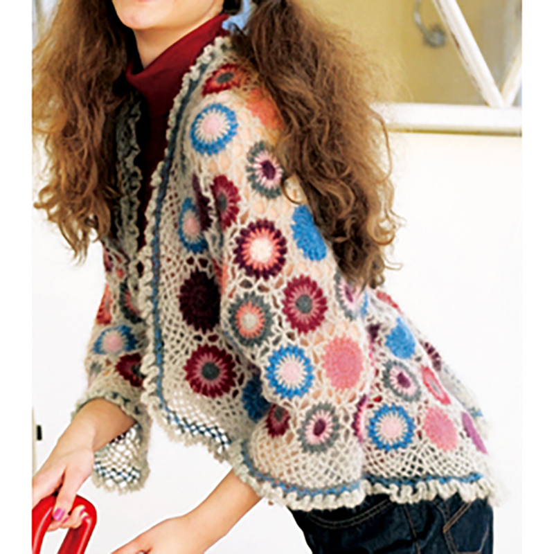 いつものかぎ針モチーフも、モヘアで編むと、雰囲気がなんだか違う。ふわふわしているから、羽がはえて、ひらひら飛んでいきそうです。ラブリーボレロはちょっと渋めの色も入れて、甘さ控えめなところがポイントです。