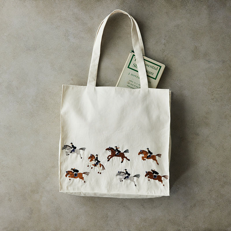 馬術のトートバッグ:約 袋本体 高さ36cm×幅37cm×底マチ10cm ※持ち手を除く