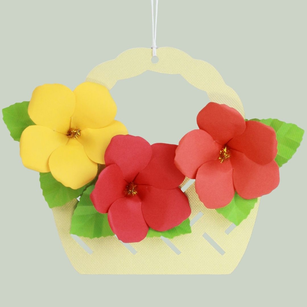 立体切り絵 花カゴ飾り ハイビスカス