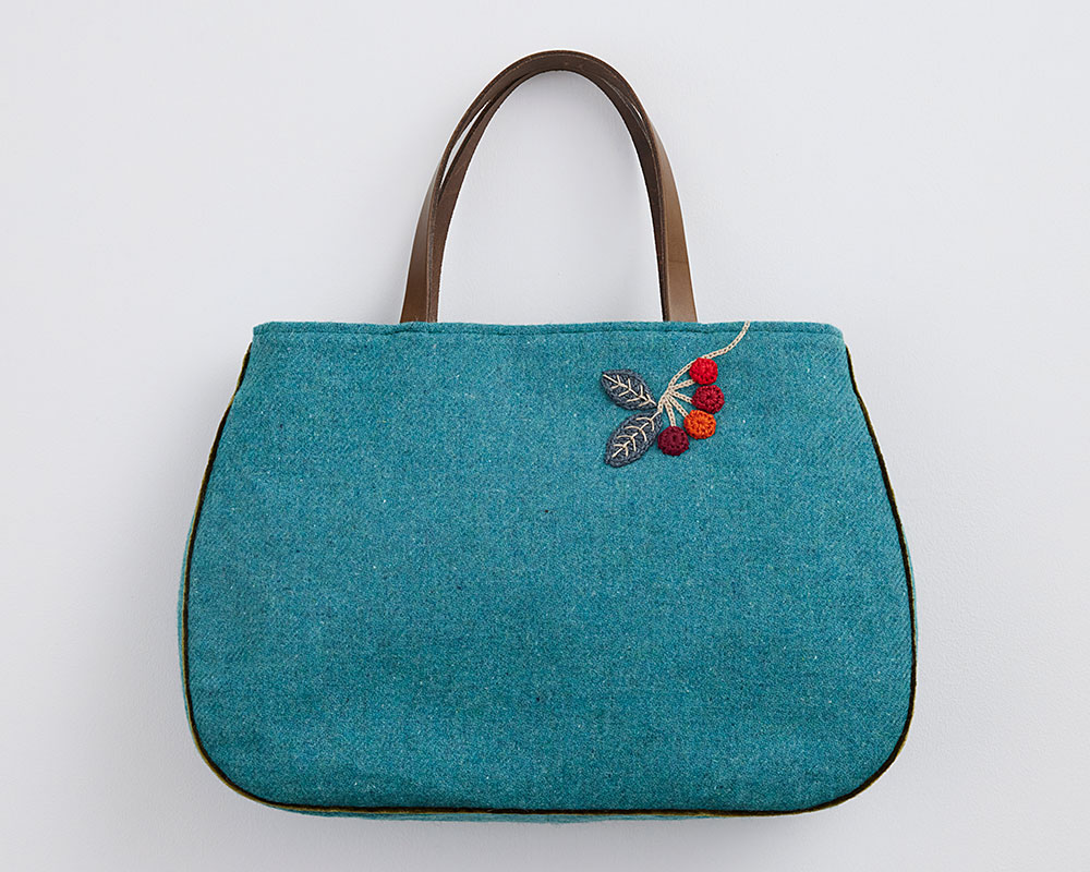 たとえば、ニットのバッグの中に、かぎ針編み、棒針編み、ビーズ編み、刺しゅう、ソーイングの要素が入っています。