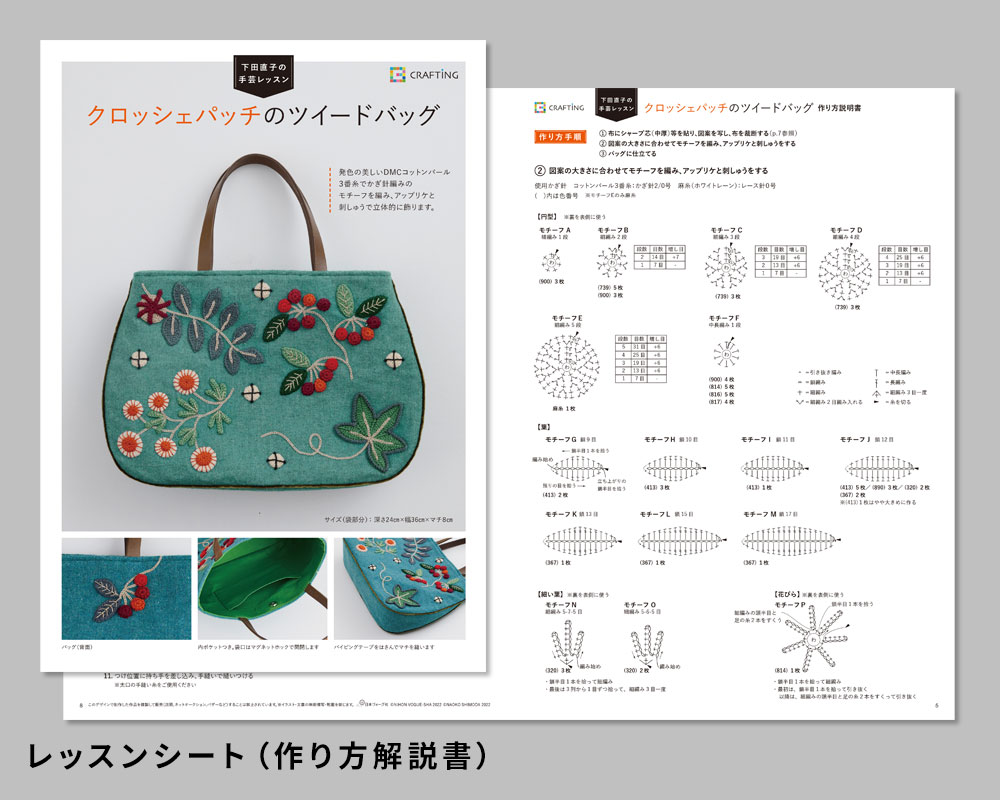 こちらは日本ヴォーグ社が運営しているハンドメイドのオンラインレッスンサービス「CRAFTING」のキットです。手づくりタウンではキットのみ販売しております。