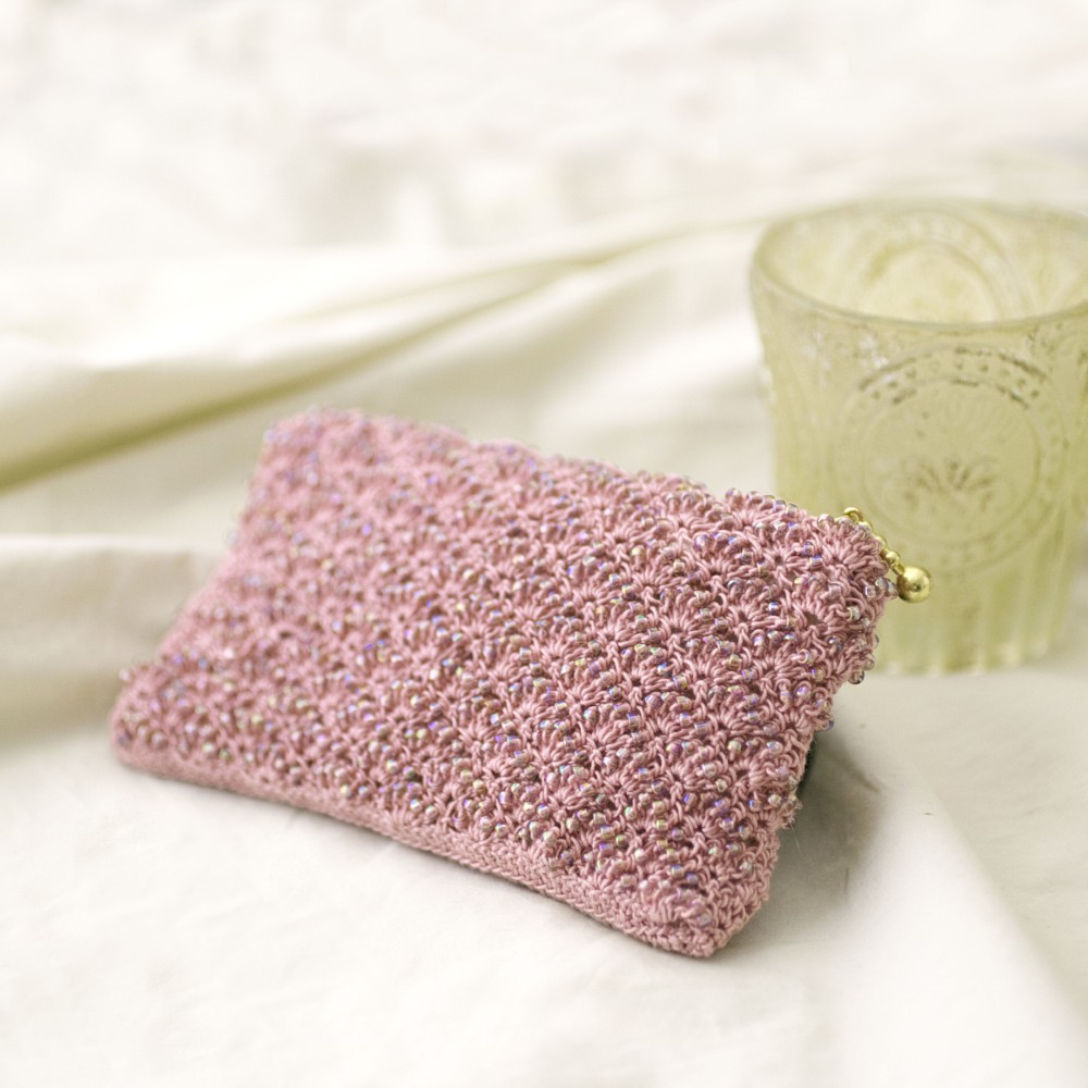 ビーズクロッシェ ミニポーチ