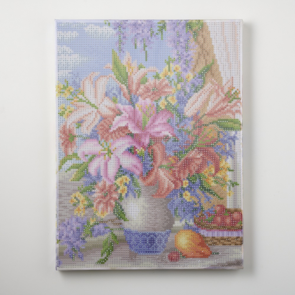 ダイヤモンドフィックスとは、ノリ付きのキャンバスに専用ビーズを貼り付けて絵を完成させるクラフトアートです。
