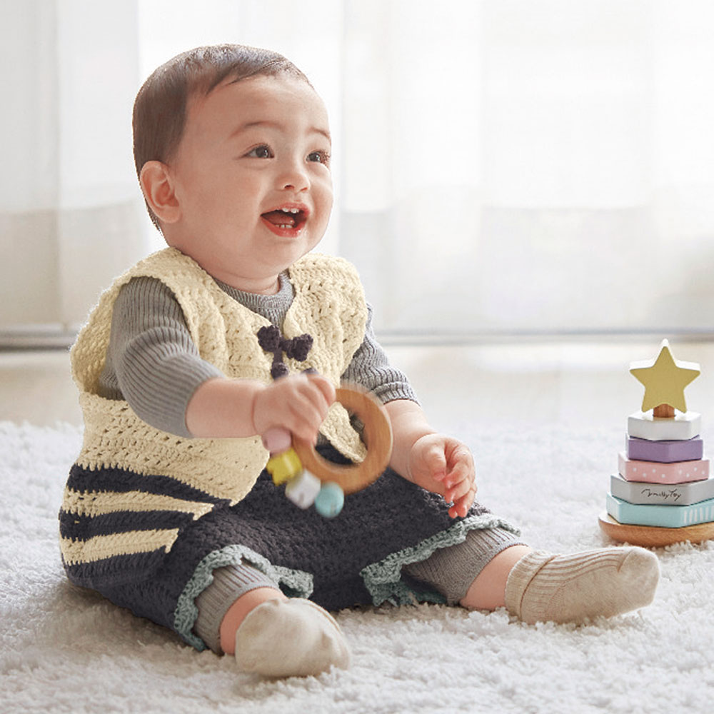 かぎ針編みの基本だけで仕上がる、ベビー用のベストが作れる手作りキット。