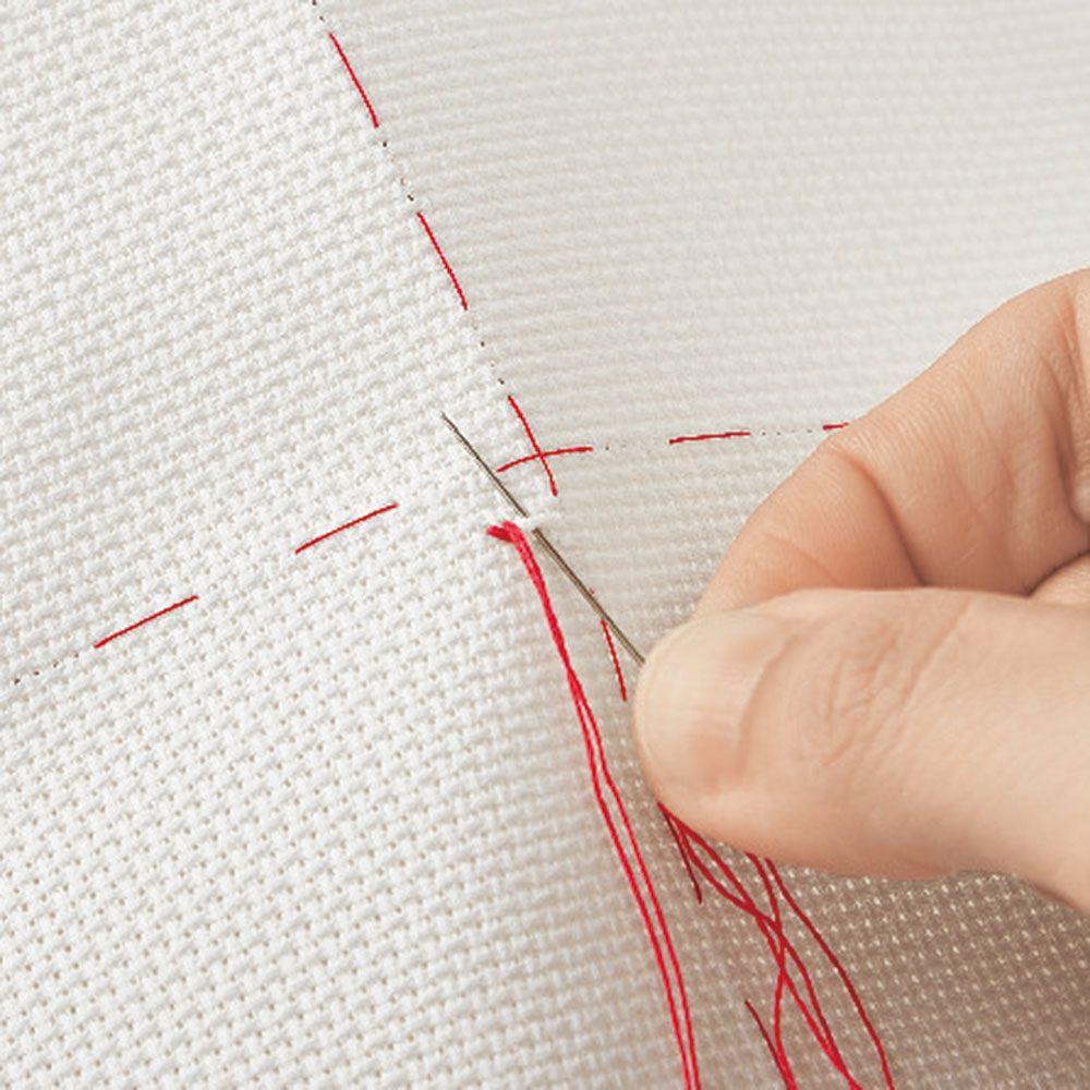 【ご用意いただくもの】針(クロスステッチ用)、はさみ(布用・糸用)、糸(しつけ用)、ものさし、印つけ道具、セロハンテープ、アイロンなど