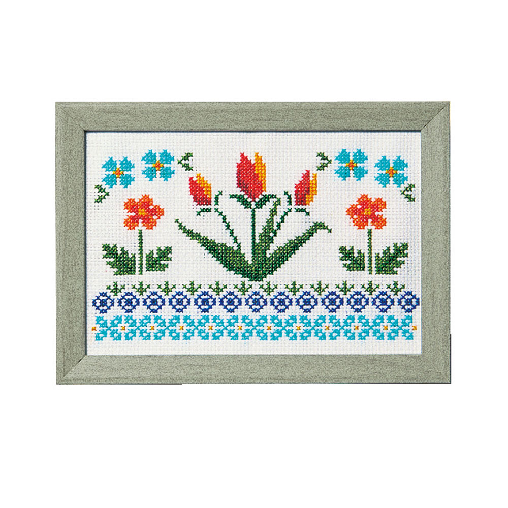 彩葉・ポーリッシュポタリー風クロスステッチ 手づくりキット チューリップとポピー