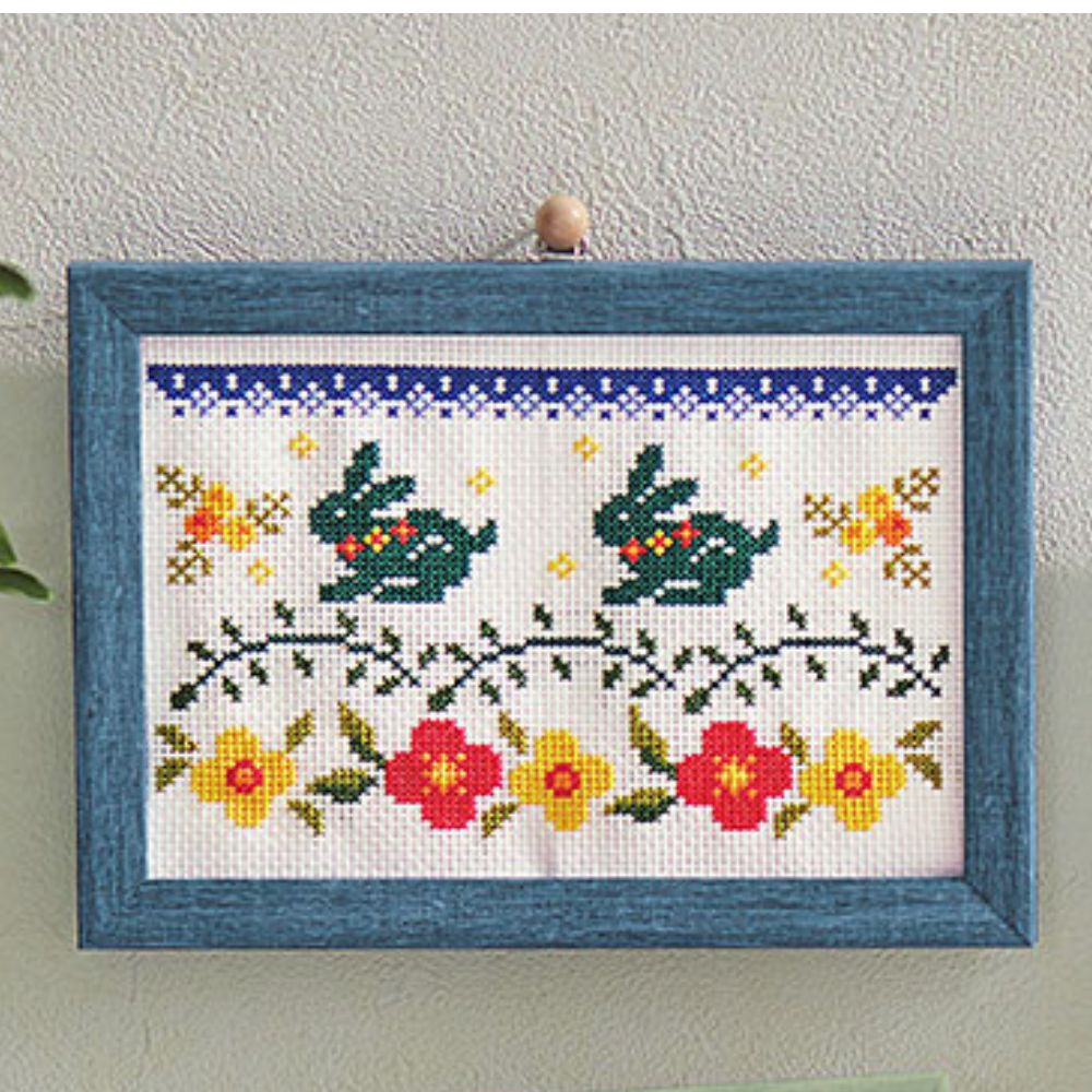 彩葉・ポーリッシュポタリー風クロスステッチ 手づくりキット ウサギとポピー