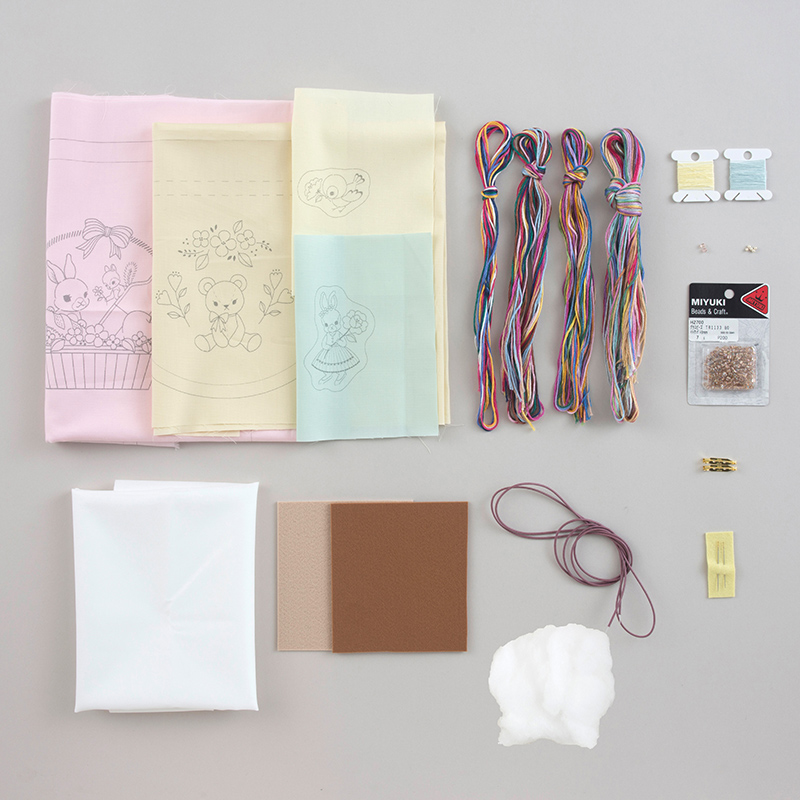 図案は布に印刷済み。材料セットがお手元に届いたら、すぐに刺しゅうを始められます。